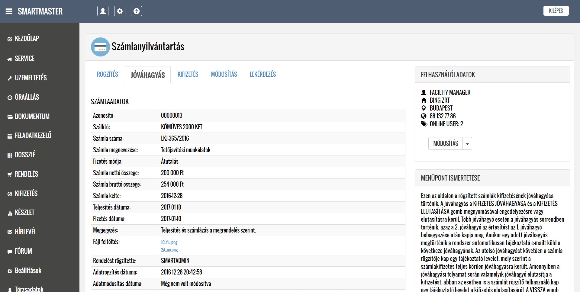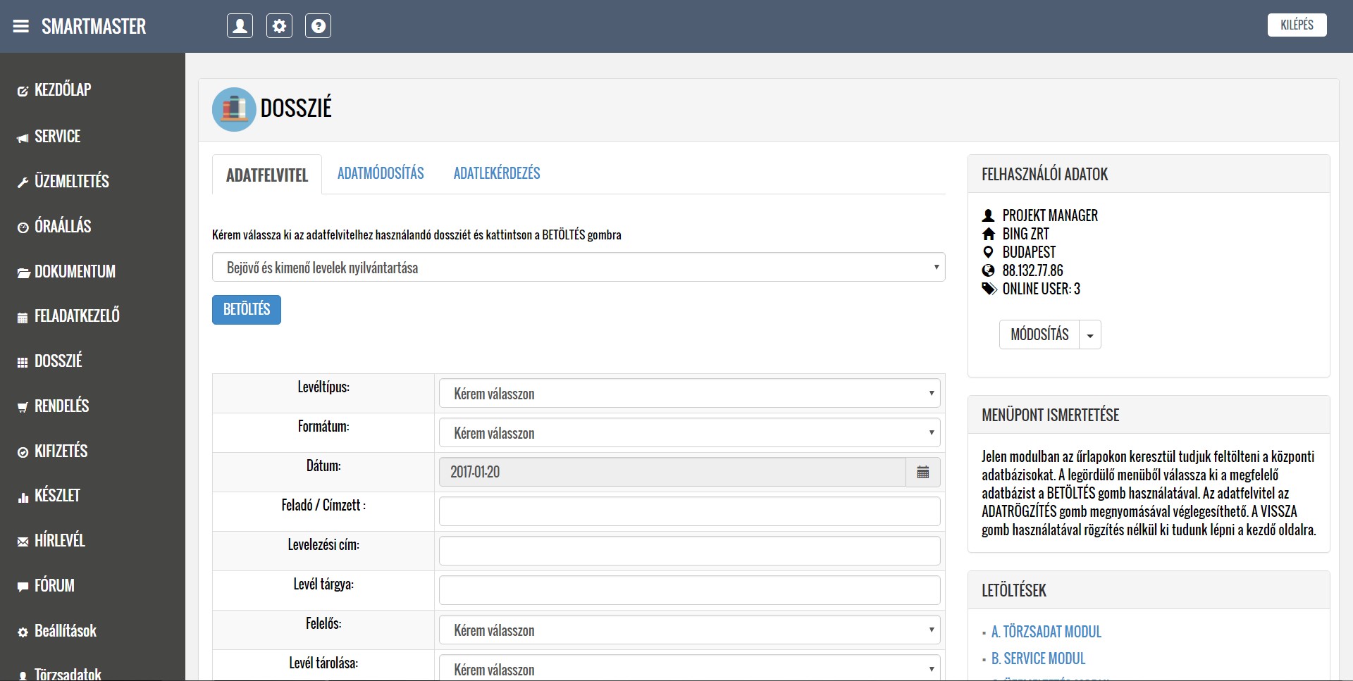 A lentiekben részletesen ismertetjük a modulok működését, a feltöltött képernyőképeken bemutatjuk a modulok menüpontjait, illetve letöltheti és elolvashatja a részletes felhasználói kézikönyveket. Köszönjük, hogy időt szakít az alkalmazásunk megismerésére, mely használata a jövőbeni munkáját nagymértékben megkönnyítheti. További kérdések esetén kollégáink szívesen állnak rendelkezésére a kapcsolati űrlap kitöltését, illetve közvetlen telefonos megkeresés esetén.