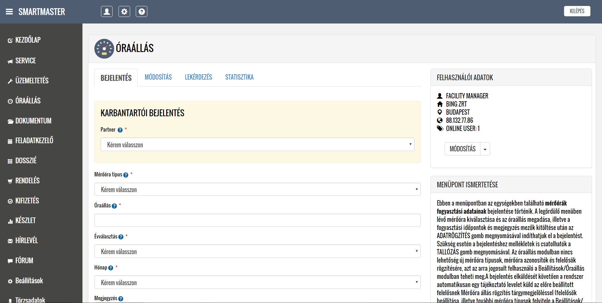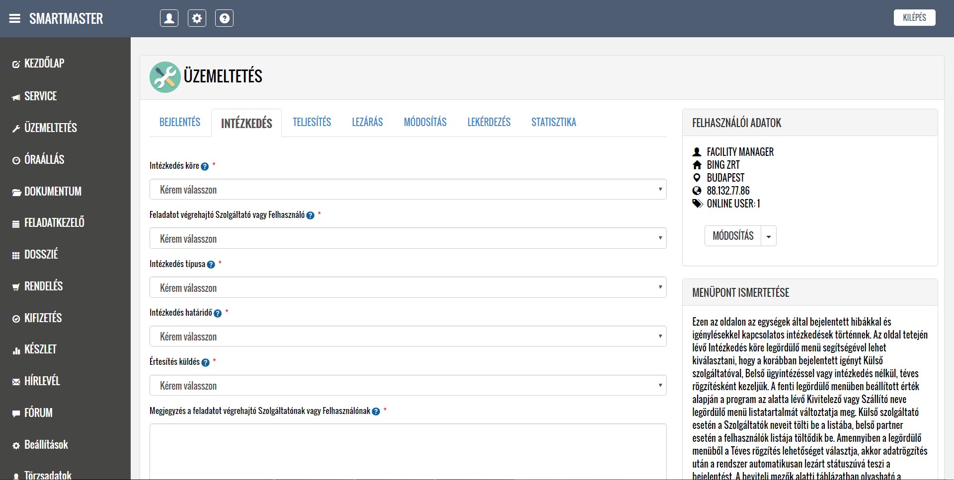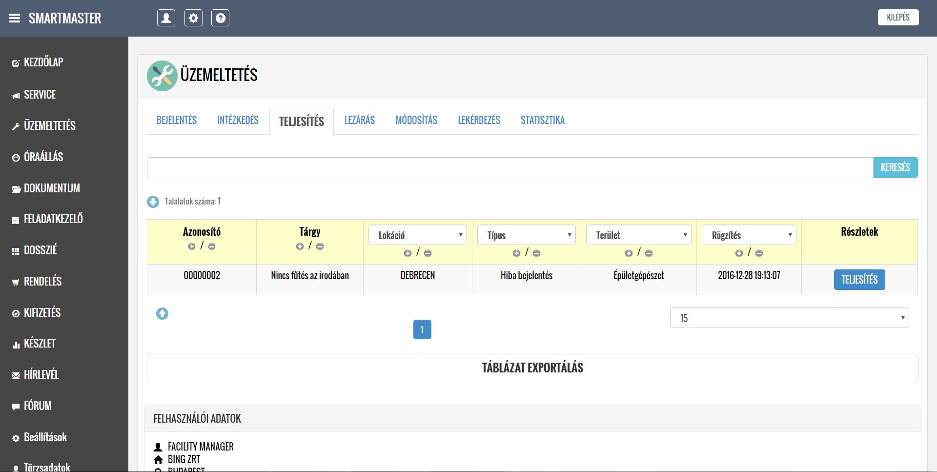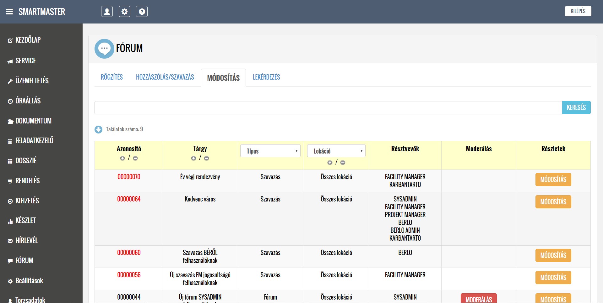 Akik a rendszer segítségével kezelni tudják az egységekből érkező hibabejelentéseket, ütemezik és dokumentálják a karbantartási feladatokat, illetve nyilván tartják a közüzemi mérőórák fogyasztásait