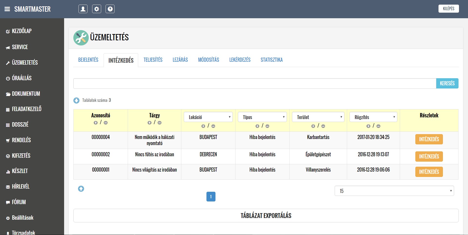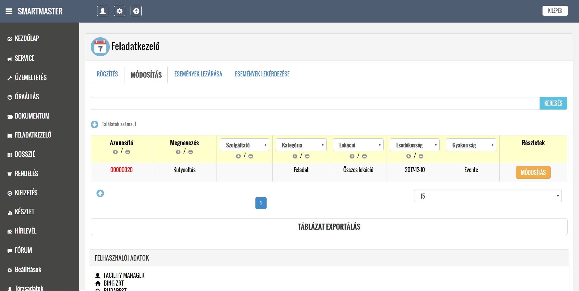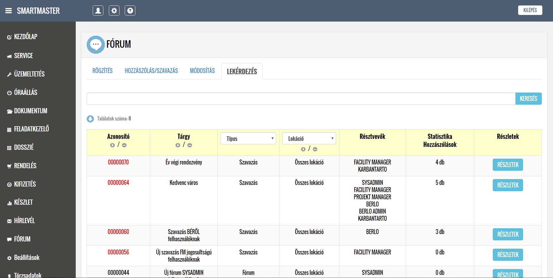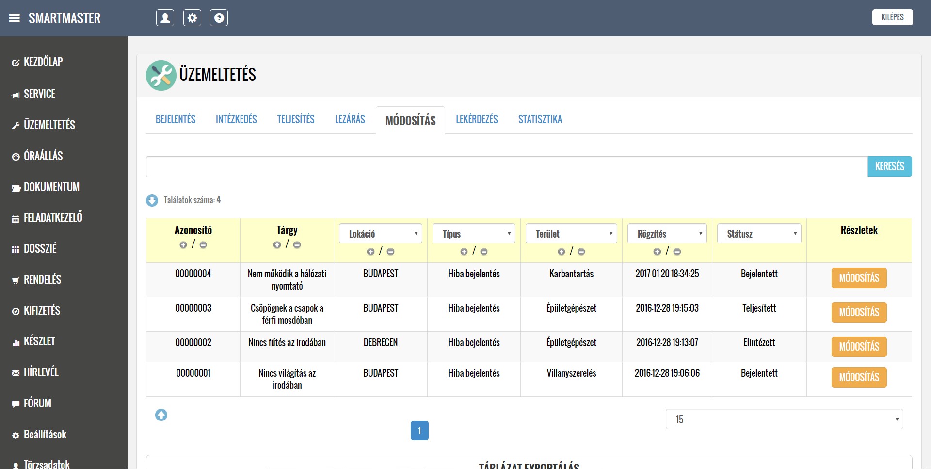 Akik a rendszer segítségével kezelni tudják az egységekből érkező hibabejelentéseket, ütemezik és dokumentálják a karbantartási feladatokat, illetve nyilván tartják a közüzemi mérőórák fogyasztásait