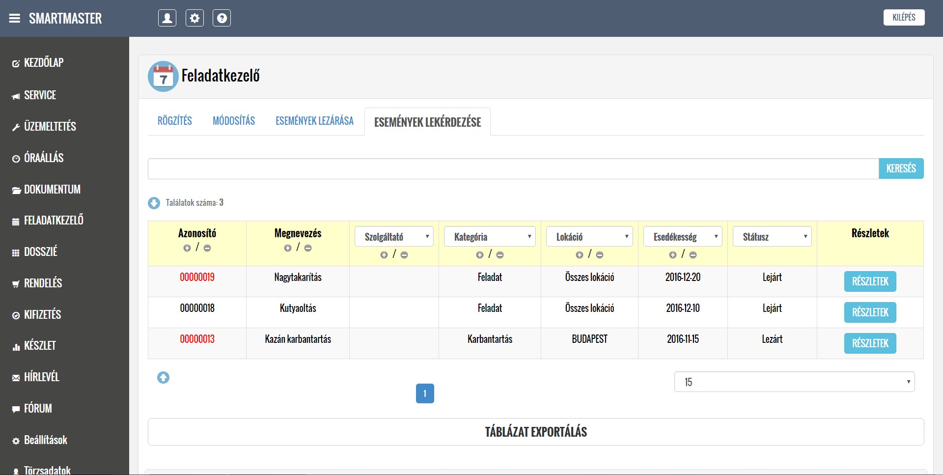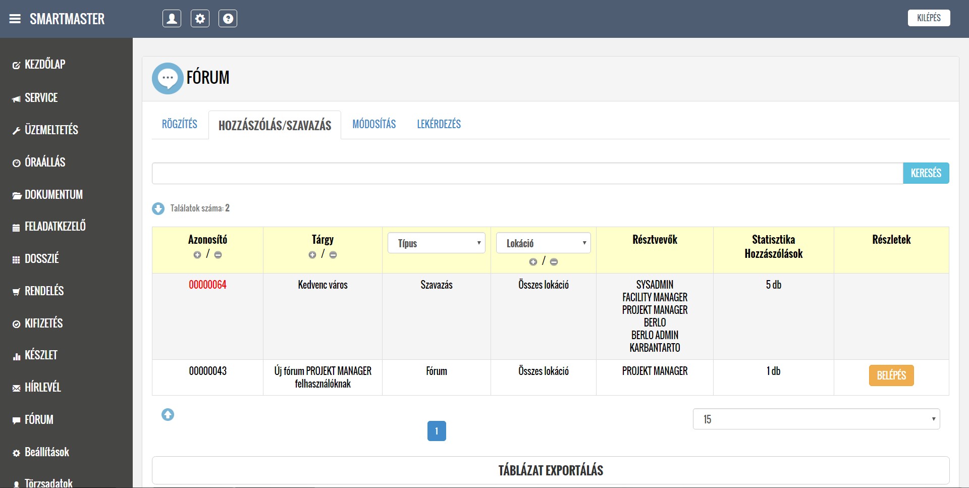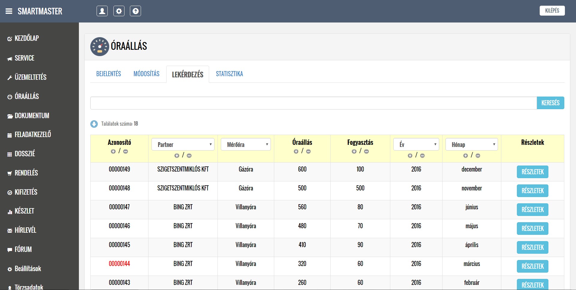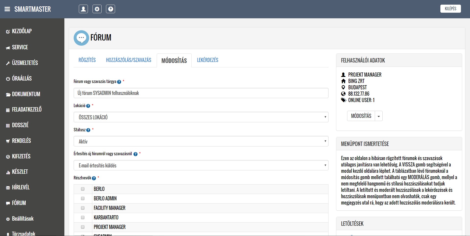 Akik a rendszer segítségével kezelni tudják az egységekből érkező hibabejelentéseket, ütemezik és dokumentálják a karbantartási feladatokat, illetve nyilván tartják a közüzemi mérőórák fogyasztásait