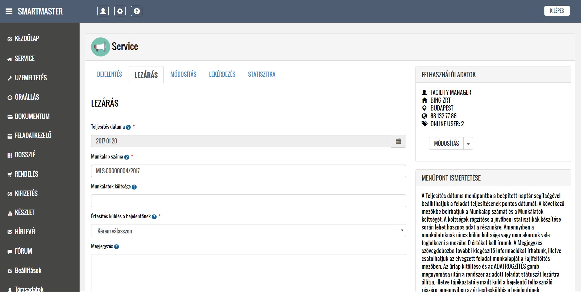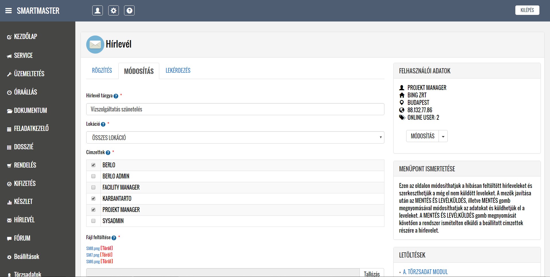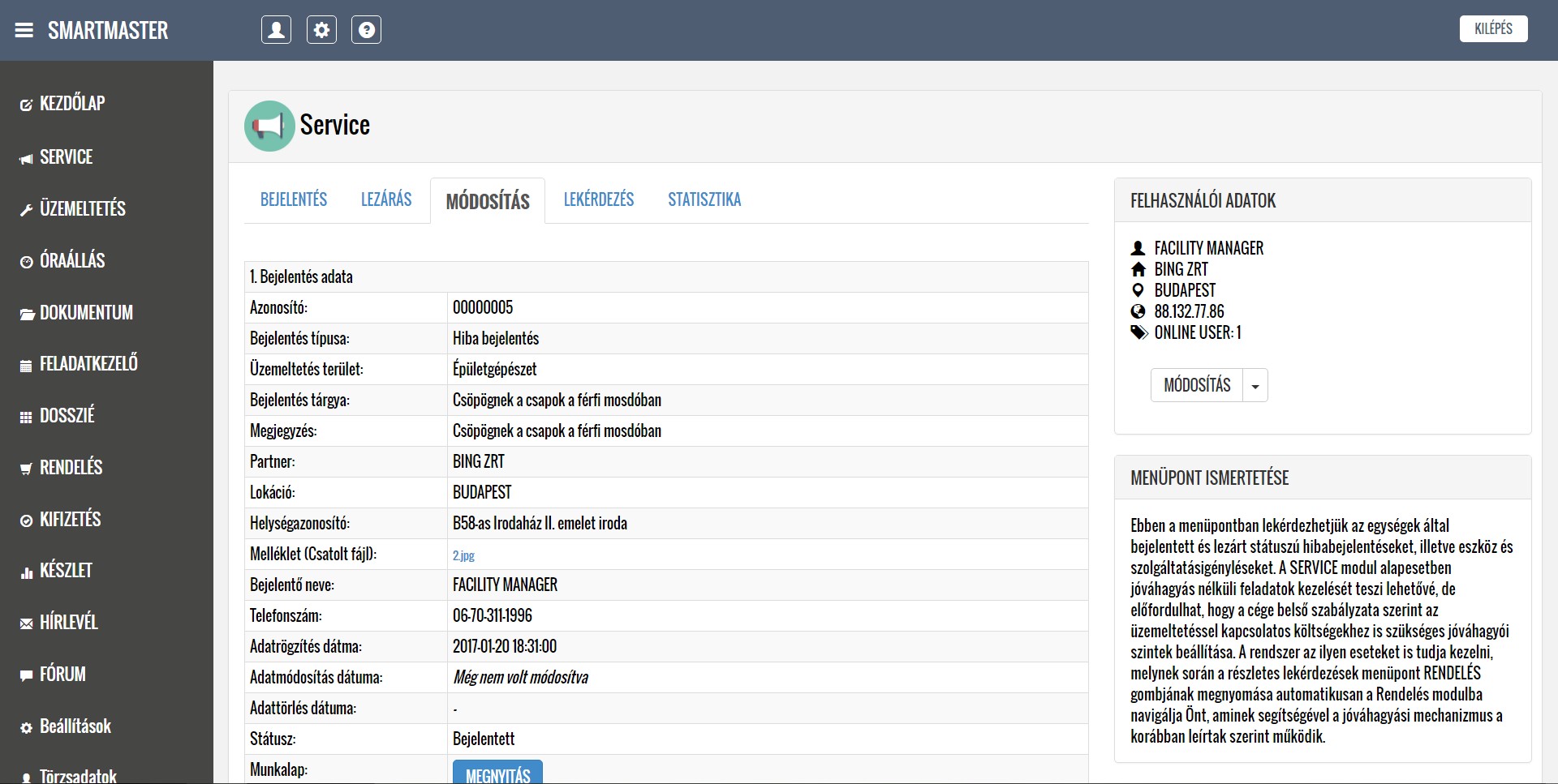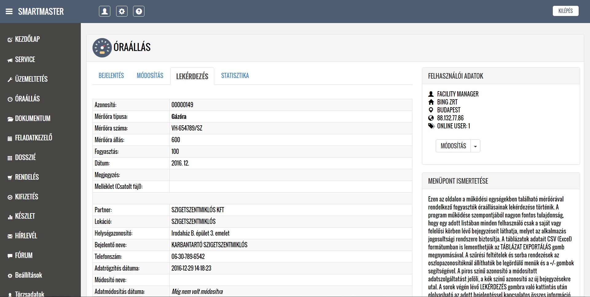 Akik a rendszer segítségével kezelni tudják a lokációkból érkező hibabejelentéseket, ütemezik és dokumentálják a karbantartási feladatokat, illetve nyilván tartják a közüzemi mérőórák fogyasztásait