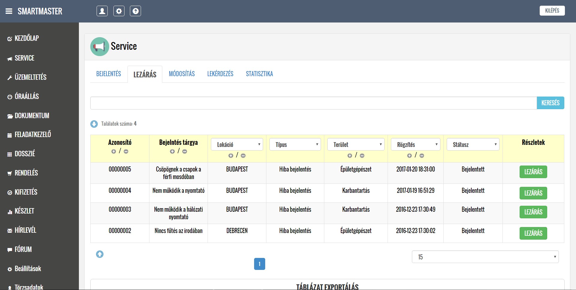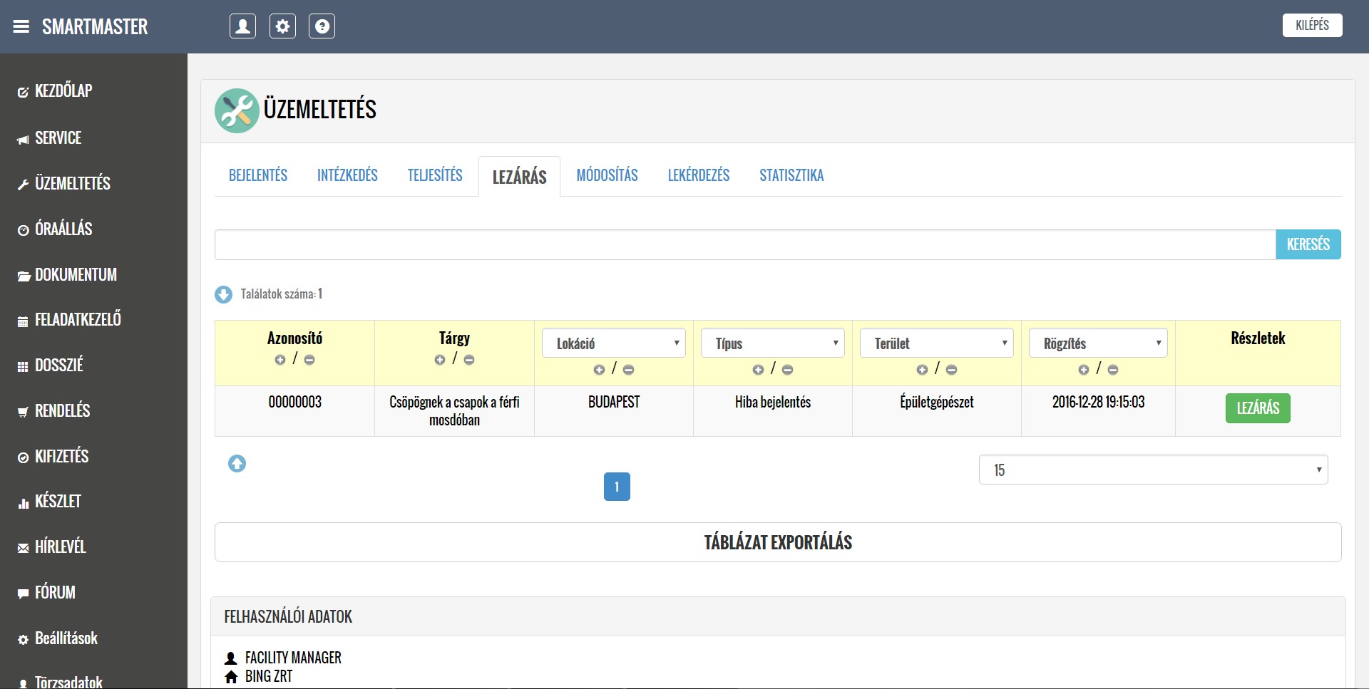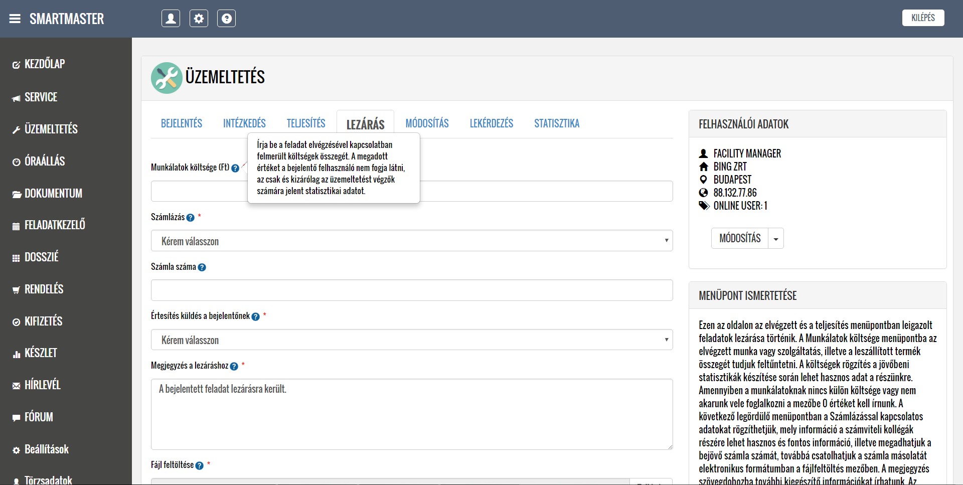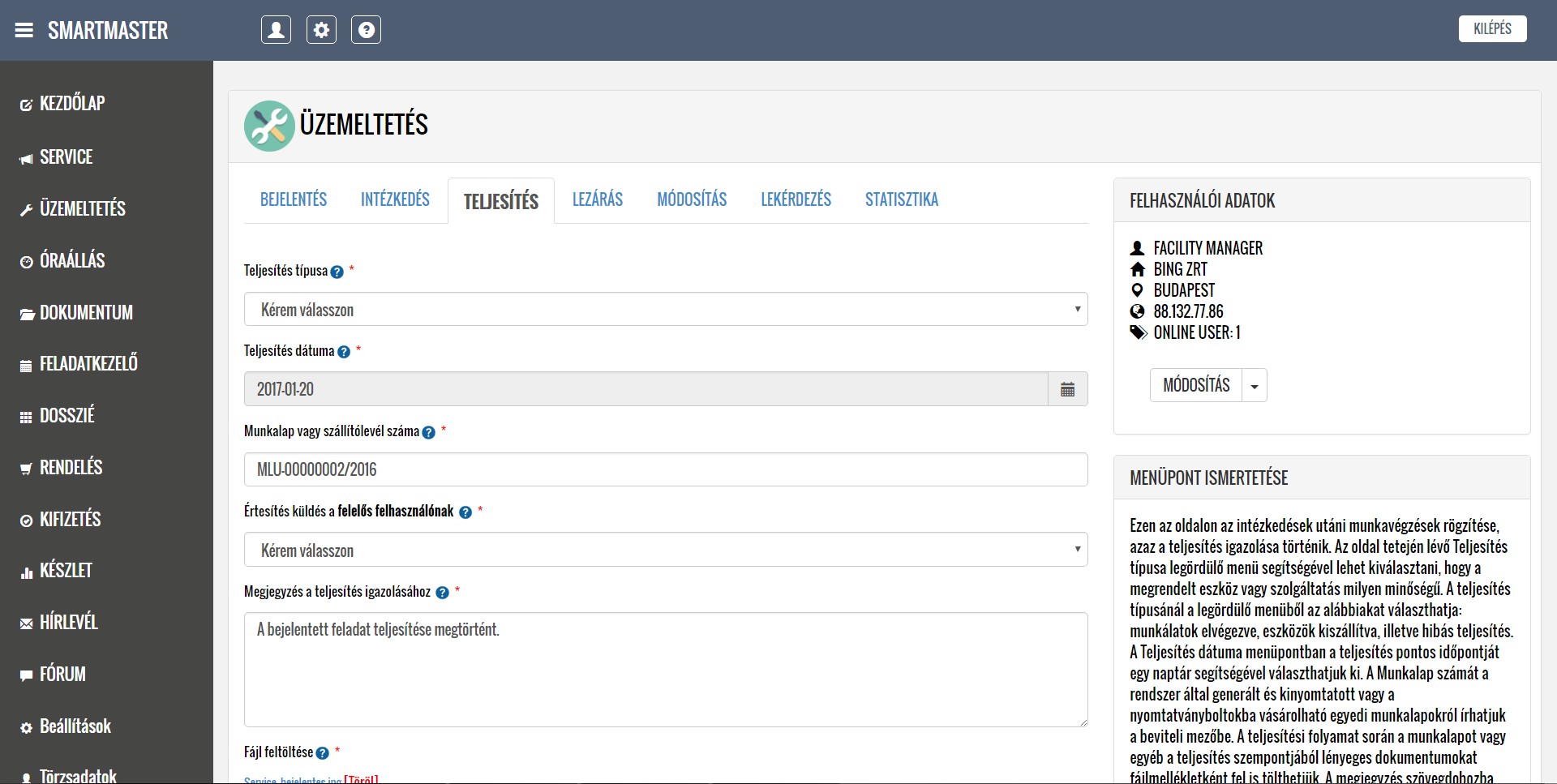 Akik a rendszer segítségével kezelni tudják a lokációkból érkező hibabejelentéseket, ütemezik és dokumentálják a karbantartási feladatokat, illetve nyilván tartják a közüzemi mérőórák fogyasztásait